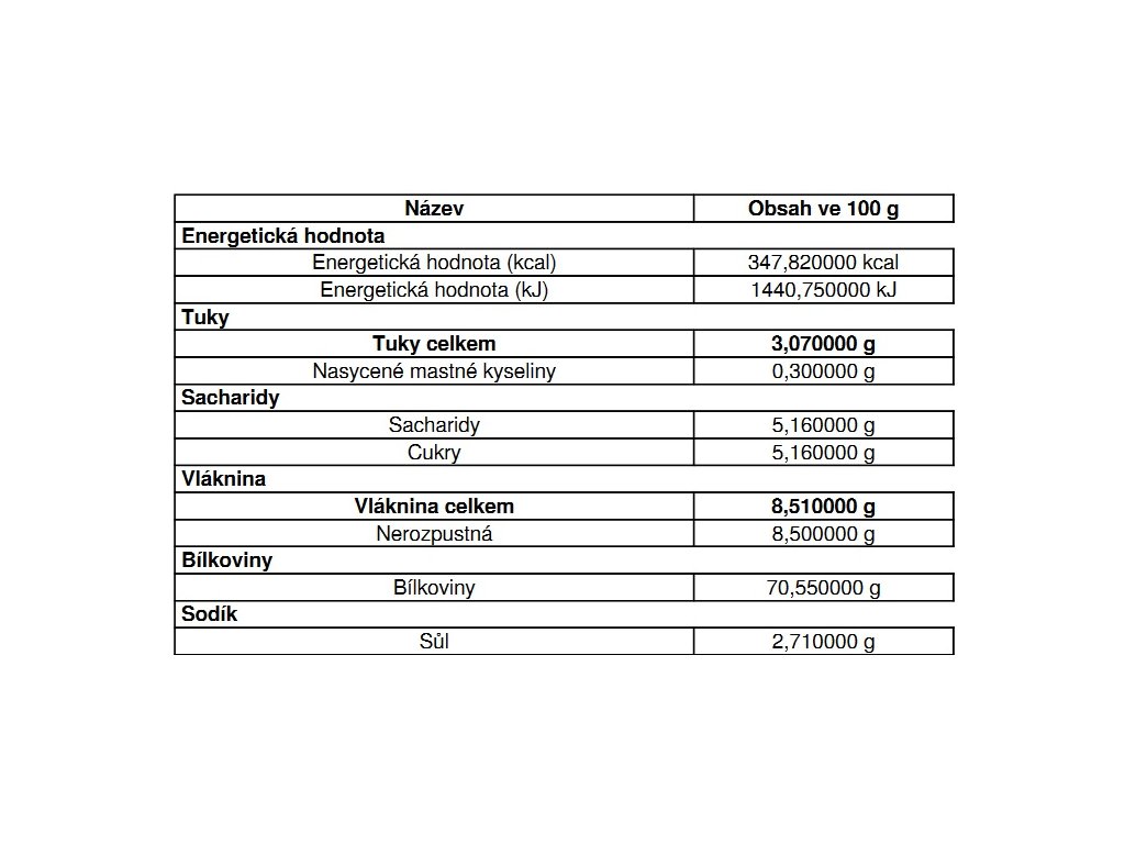 | Nutriční hodnota | Množství |
